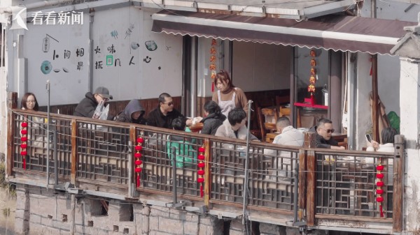 一位入住的游客说:“我们选择了这家据说是由百年老宅改建成的。住在这里,清晨我们可以感受古镇的静谧气息,白天我们又可以感受江南的年味。”