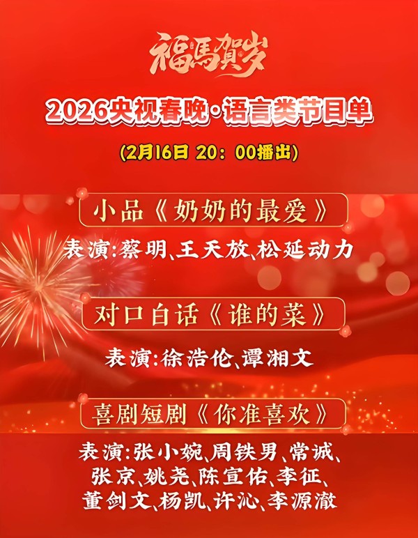 2026年2月16日下午2点20分,央视官宣了《2026年春节联欢晚会》节目单。