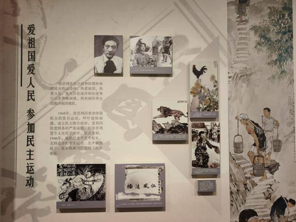 美术馆6楼,宜兴徐悲鸿纪念馆内,来自上海的游客薄先生正仔细阅读徐悲鸿的生平简介。“原来只知道徐悲鸿擅长画马,但现在觉得,他身上的爱国主义情操、救国救民的行动,更让人肃然起敬。”