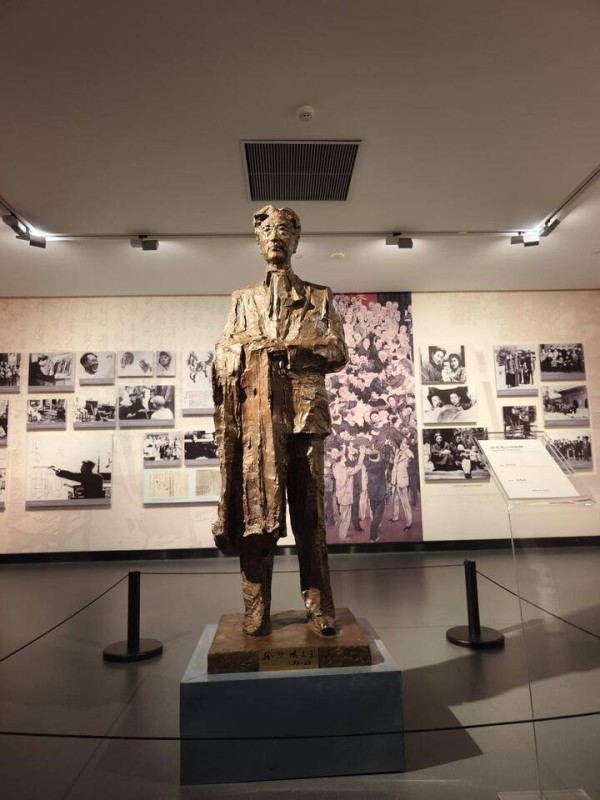 馆内,有一尊吴为山雕刻的徐悲鸿铜像。10岁的岑昂轩围绕塑像仔细端详,“妈妈你看,徐悲鸿爷爷塑像是2016年创作的,和我一样大!”“是啊,徐悲鸿爷爷是杰出的美术家,我们后人会一直铭记他、纪念他……”岑昂轩母亲陆程程说。岑昂轩父亲岑佳立告诉记者,他们一家今早从宁波开了两个半小时车来宜兴旅游,第一站就来到徐悲鸿纪念馆,“马年,就想来看看‘马’,也带孩子了解艺术大家的生平事迹。”