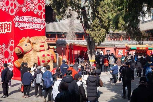 东岳庙以“祈福迎春+文化溯源”为核心,挂福牌、绕福树等传统祈福活动与“马”主题馆藏精品展相映成趣。