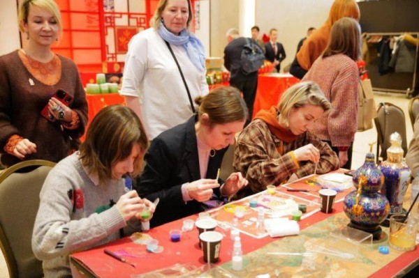 此外,“欢乐春节”新春庙会活动16日在莫斯科市中心的马涅什广场拉开帷幕。17日,活动持续升温,吸引越来越多俄罗斯民众前来体验。此次活动特别推出北京非遗大师班体验板块,聚焦景泰蓝与京剧脸谱体验。在非遗传承人指导下,俄罗斯民众亲手体验东方工艺的精妙,聆听色彩与线条背后的文化故事。同时,广场舞台上文艺演出轮番登场,与非遗互动体验相得益彰,让现场民众充分感受新春喜悦氛围。