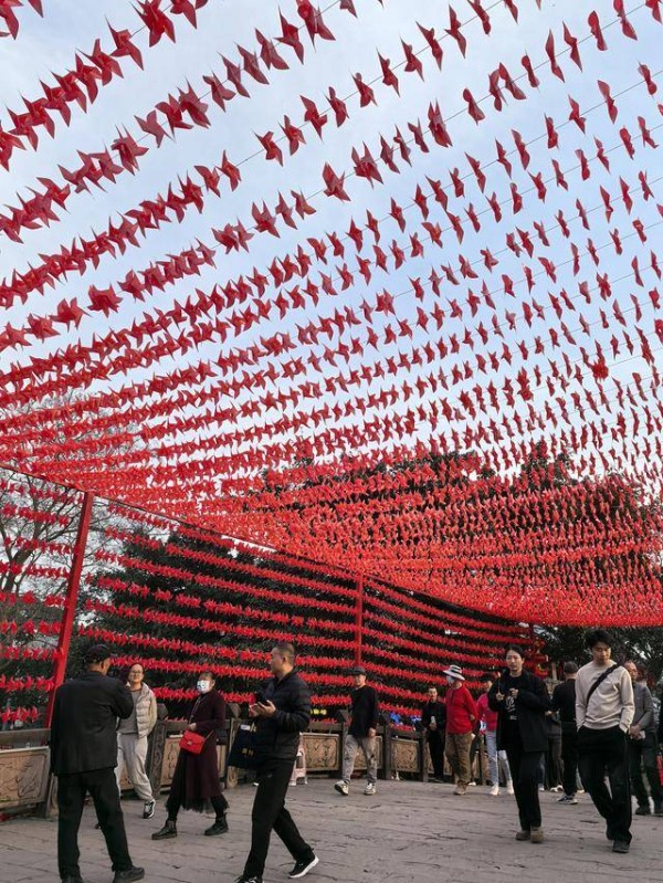 2月20日,农历正月初四,成都黄龙溪古镇阳光明媚,来自省内外的游客纷至沓来,在古色古香的街巷间感受浓浓的中国年味。