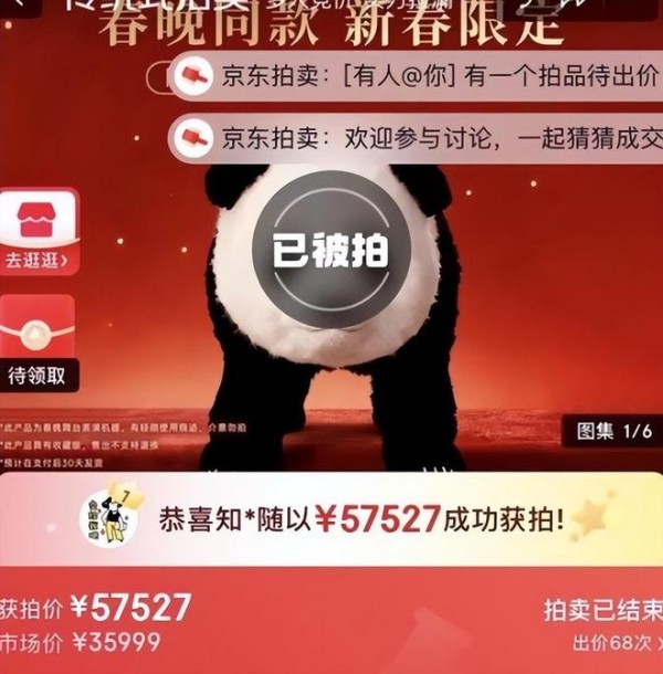 春晚不仅是展示的舞台,也成了尖端科技的“带货”现场。随着包括松延动力、宇树科技、魔法原子等品牌在内的国产机器人矩阵集体亮相,公众对机器人的关注度急剧飙升。京东数据显示,春晚开播两小时内,机器人搜索量环比增长超过300%,各品牌招牌型号热度迅猛攀升。这些登台机器人也各有归宿:除了“假蔡明”被赠予本尊,魔法原子公司在宜宾分会场亮相的同款熊猫机器人,在后续拍卖中以57527元成交,价格超过原价两倍。