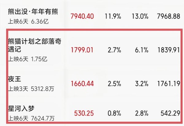 另一边,许宏宇执导,成龙、马丽领衔的《熊猫计划之部落奇遇记》还能勉强压得住《夜王》,但如果“熊猫计划”在豆瓣开分的话,情况可能就要大的变故了。