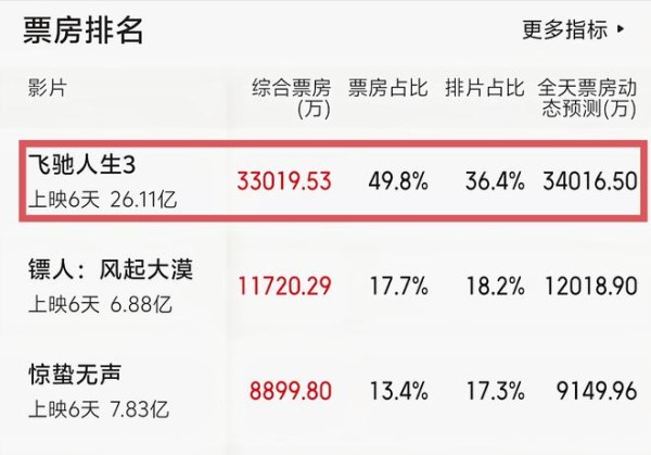 《飞驰人生3》从预售开始,就一直是票房、排片双榜第1,甚至在豆瓣刚开分时,还当过一段日子的评分第1。
