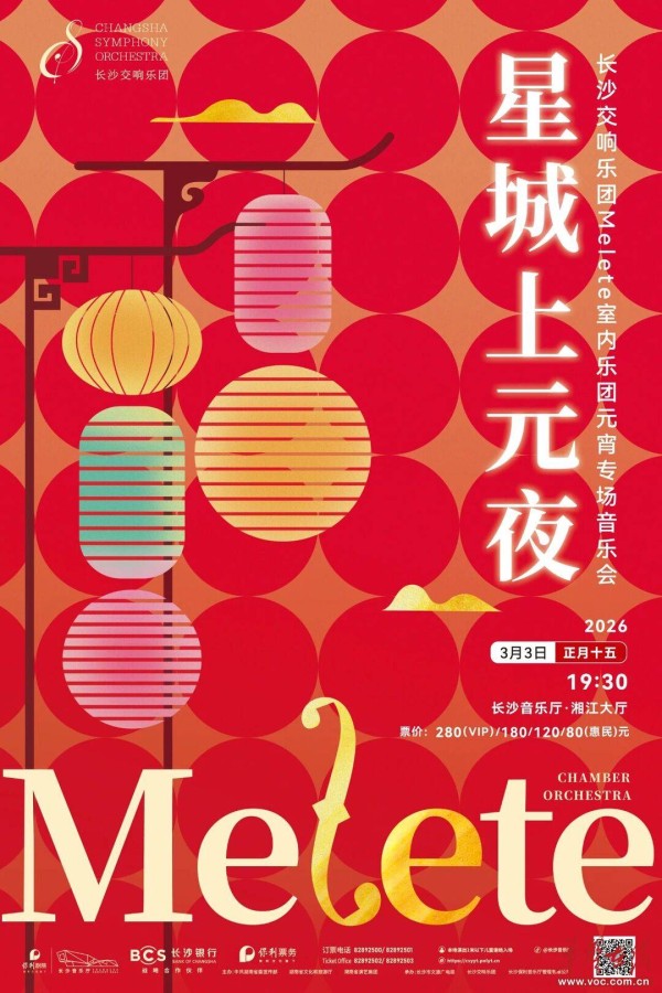 3月3日元宵节当晚,长沙交响乐团Melete室内乐团将在长沙音乐厅举行“星城上元夜”元宵音乐会,为观众送上开年“音乐豪礼”。音乐会特别设置“我们伴奏你来唱”互动环节,邀请观众同台欢唱,让年味与诗意在动人乐章中完美交融。
