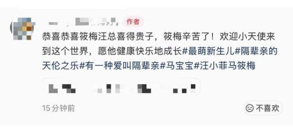 随后汪小菲的工作人员在社交平台官宣,还公开了产房照,附文“恭喜恭喜筱梅汪总喜得贵子,筱梅辛苦了!欢迎小天使来到这个世界,愿他健康快乐地成长”,这个账号经常会发布汪小菲和马筱梅的近况,而且均获得了本人的授意。