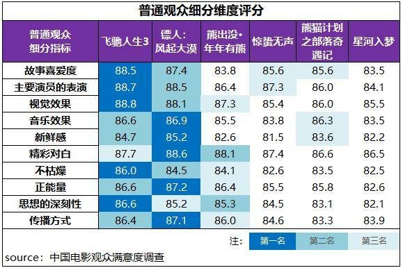中国电影观众满意度调查由中国电影艺术研究中心联合艺恩进行,是一套独立于票房、售票平台及社交网站之外的电影综合评价体系。