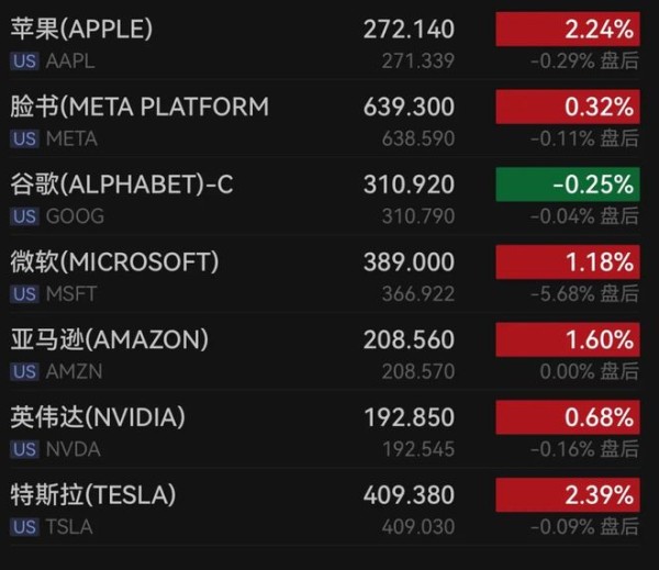 科技巨头多数上涨,苹果上涨2.24%,苹果公司周二宣布,将大幅扩建其在休斯敦的工厂运营,首次将Mac mini带到美国本土进行生产。英伟达上涨0.68%,特斯拉上涨2.39%,微软上涨1.18%,亚马逊上涨1.60%,Meta上涨0.32%。谷歌A类股下跌0.19%,谷歌C类股下跌0.25%,博通下跌1.47%。