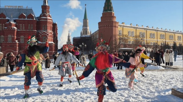 冬日街头,鼓点激昂,舞步铿锵,中国年味与俄罗斯热情相遇,也让春节成为连接中外文化、传递友谊与祝福的温暖纽带。