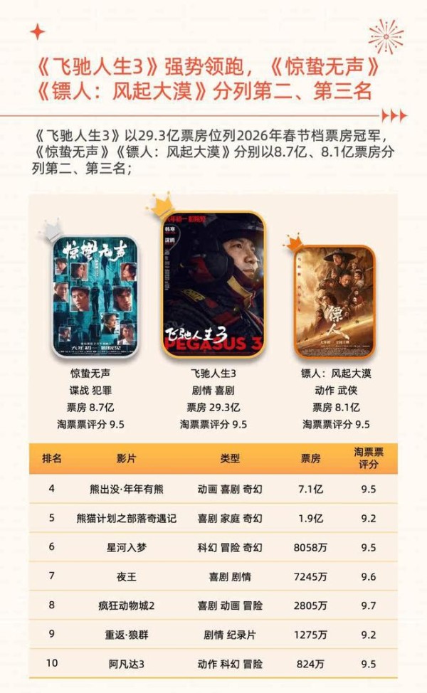 《飞驰人生3》7天27亿!韩寒、沈腾凭什么垄断春节档?春节档57.52亿元收官!《飞驰人生3》夺冠无悬念