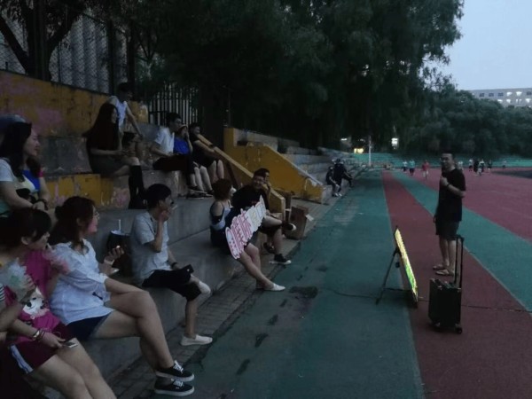 “我们学校操场到处都有人表演。”一位大学生演员提议,就在操场办开放麦。