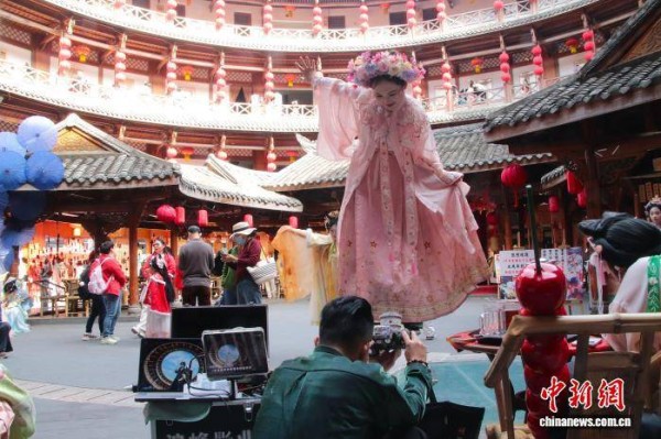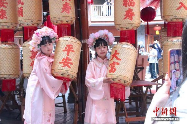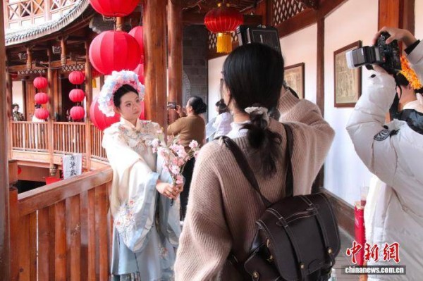 (新春走基层)成都洛带古镇:簪花写真体验人气旺