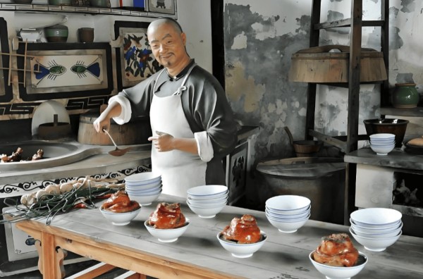今天的枫泾古镇有金山农民画,融合江南地区灶头壁画、刺绣、剪纸等民间技艺,荣获“中国故事基地”称号;还有百年非遗枫泾丁蹄,始创于清咸丰二年(1852年)枫泾镇丁义兴酒店,以本地黑毛猪后蹄为主料,配嘉善酱油、绍兴花雕、冰糖、桂皮、丁香等辅料,经开蹄、整形、焯水、拔毛等八道工序,采用“三旺三文”焖煮技法制作。