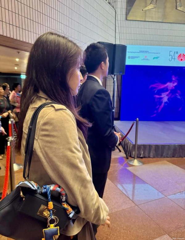 霍启刚在忙着跟人打招呼,郭晶晶紧随其后,夫唱妇随既视感。遇到郭晶晶不认识的人,霍启刚还体贴做介绍,郭晶晶露出一脸温柔笑容握手打招呼,夫妇二人在社交场合配合默契,尽显恩爱幸福。