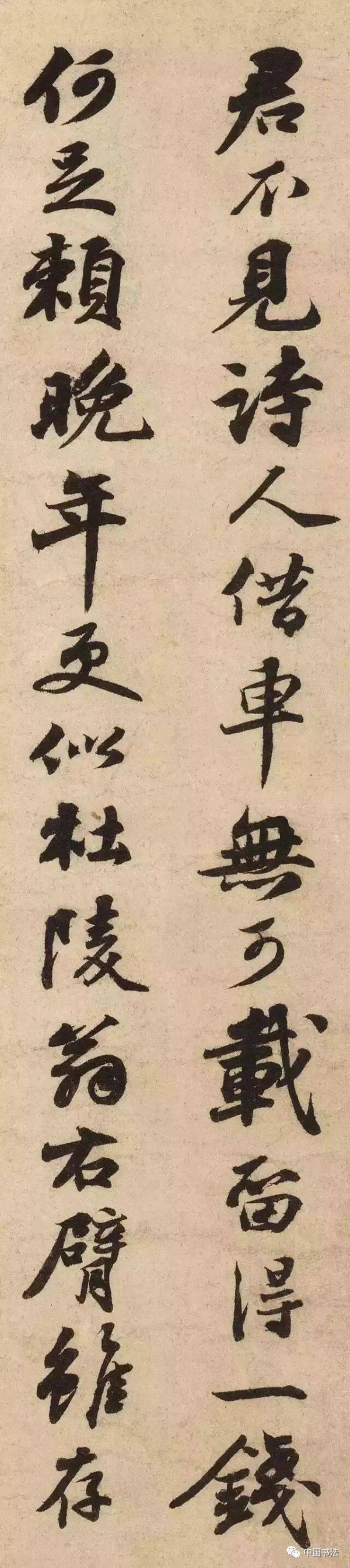 【释文:君不见诗人借车无可载,留得一钱何足赖。晚年更似杜陵翁,右臂虽存】