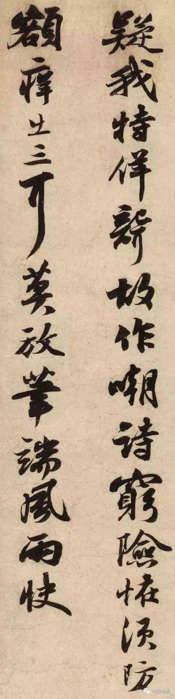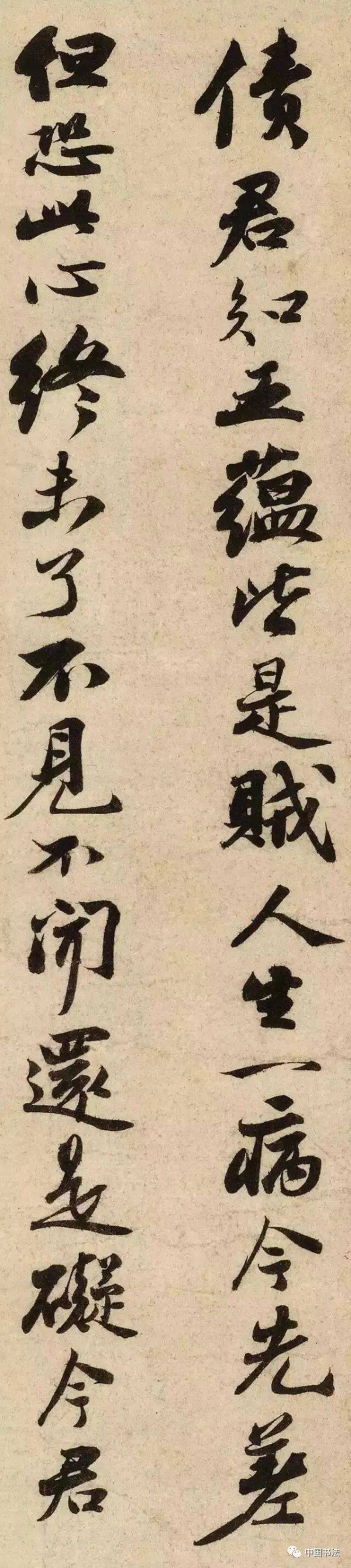 此篇行书高清放大后,发现他的字点画精到,笔笔交待清楚,不滞不速,沉稳浑雄,峭逸劲健,神彩夺目。很明显,他将他的情绪尽数带到了书法中,尽情的挥洒发泄。