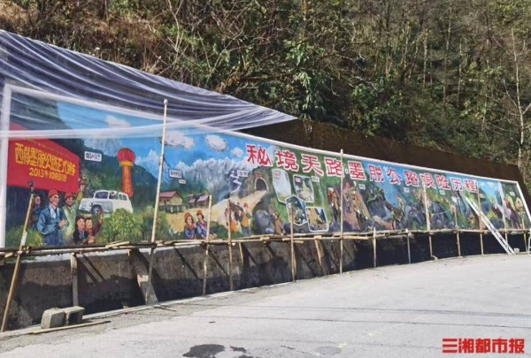 华声在线2月27日讯(文/视频 全媒体记者 高煜棋 通讯员 王代乐 陈瑜坤)2月27日,西藏自治区林芝市墨脱县,80岁的湖南画家宁敏帆轻轻放下画笔。长26米、耗时两个月完成的墨脱公路主题墙画,在高原上徐徐展开。作为湖南省美术家协会会员、知名工艺美术师,宁敏帆从湖南奔赴雪域高原,以手中画笔讲述“天路”故事、致敬英雄。
