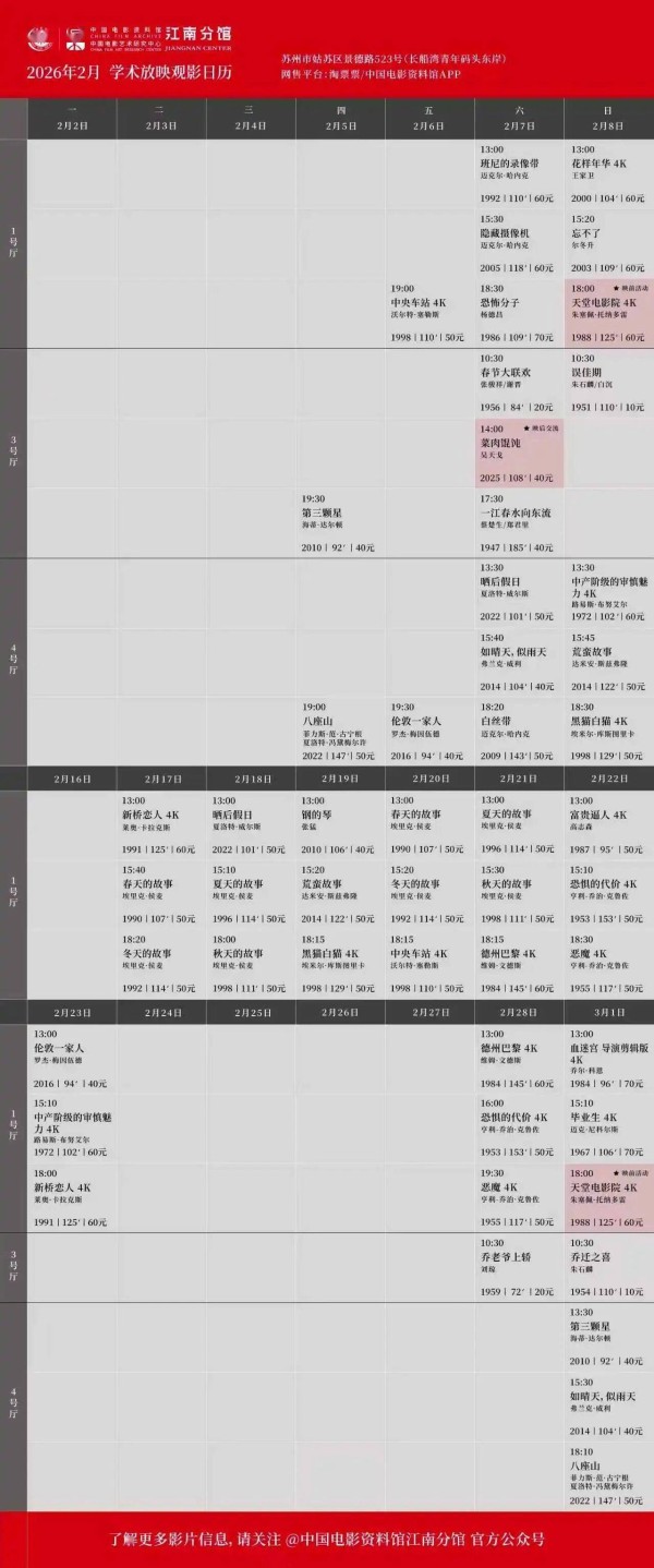 苏州今日放映|2026.2.28 周六(调休)