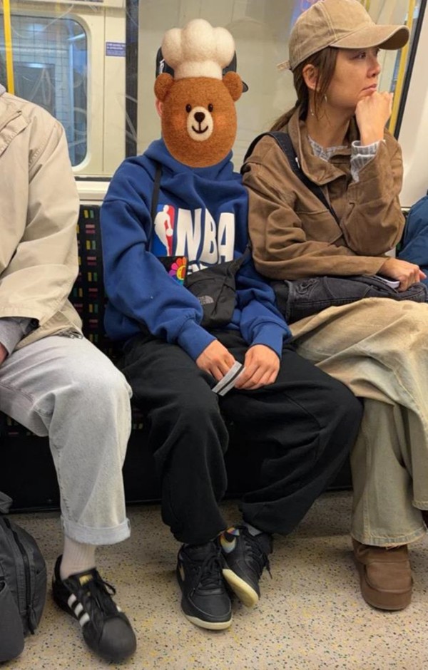 晒出的偶遇照中,张智霖身穿一件黑色轻薄羽绒夹克,内搭黑色高领针织衫,下身搭配深色牛仔裤,头戴一顶灰色棒球帽,整体造型低调简约,充满休闲随性气息。