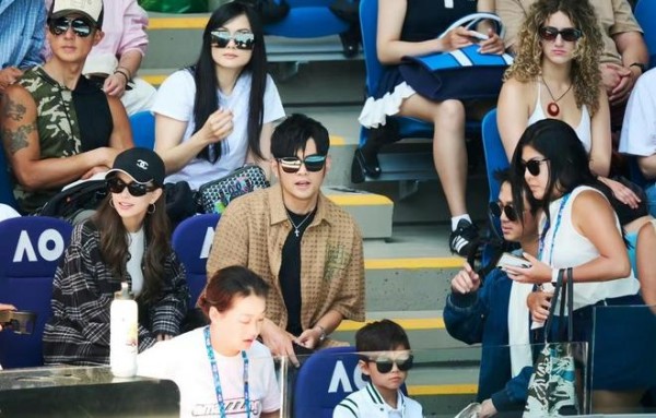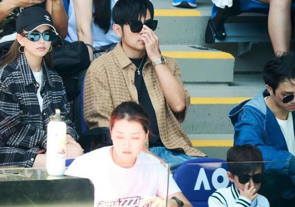 那天一起去看球赛的还有吴尊等人,他们坐在周杰伦与昆凌身后的座位上,罗密欧则坐在最前面观看比赛。