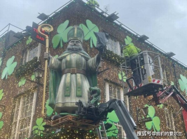 就在前天,不少路过Temple Bar酒吧的游客都惊呆了:酒吧屋顶上居然平地起了一座高达4米的圣帕特里克雕像。