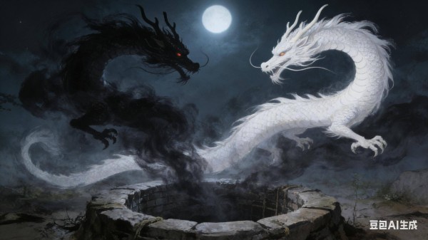 到了子时,月黑风高,枯井边阴风阵阵,一股刺鼻的黑气从井里冒了出来,化作一个青面獠牙的黑妖,张着血盆大口就朝小白龙扑去。