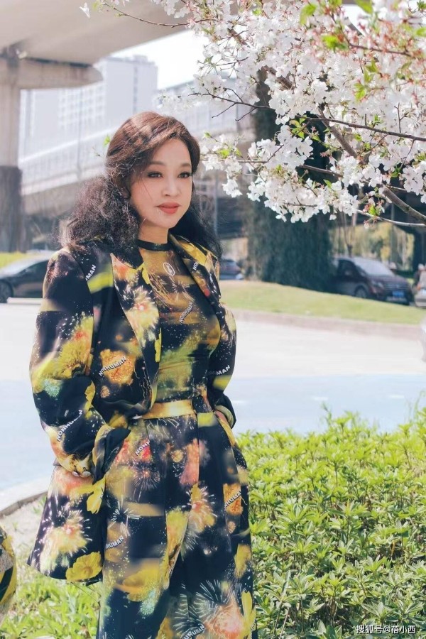 刘晓庆身上这套印花西装+阔腿裤套装,真的是把高级感与艺术感拉满。西装以深邃的黑色为底色,晕染着明黄、翠绿与暖橙的抽象花纹,色彩吸睛却不俗气,打破了纯色西装的沉闷,自带复古与艺术气息。版型是宽松廓形设计,不紧绷、不勒身,对身材包容度极高,能巧妙遮住腰腹、臀部与手臂的小赘肉,微落肩设计弱化了西装的硬朗感,让气质更柔和亲切,衣长刚好盖过臀部,修饰身形的同时更显利落。