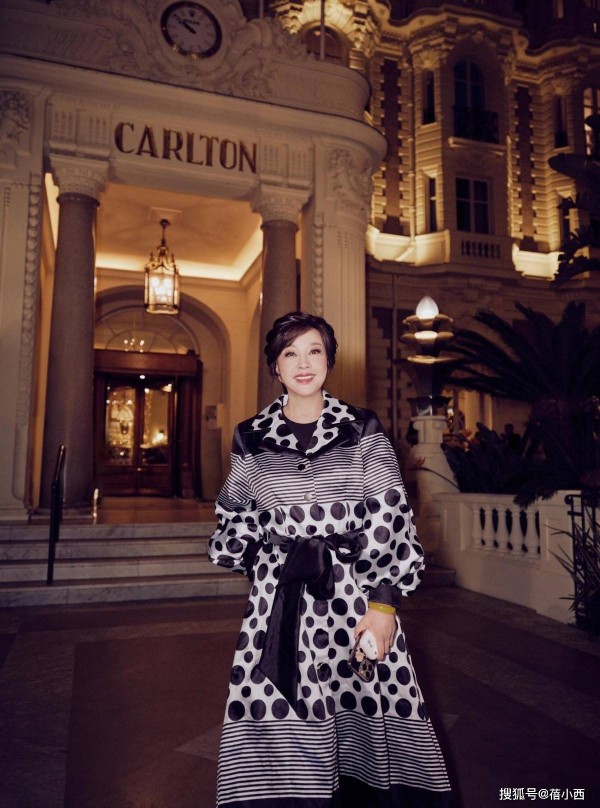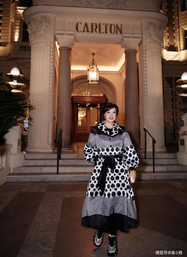 在酒店的大理石台阶前,刘晓庆以一身黑白波点条纹拼接大衣惊艳亮相,把复古名伶的优雅与现代潮感完美融合。这件大衣设计独特,采用经典的黑白波点与条纹拼接,既有赫本式的复古韵味,又不失现代设计感。大翻领设计恰到好处地展露肩颈线条,利落感十足,又能修饰脸型。腰间的黑色宽腰带巧妙收紧了腰线,打破了大衣的臃肿感,特别适合微胖女性。