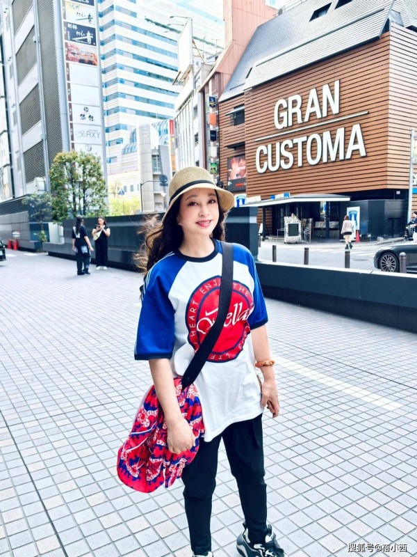 在街头,刘晓庆又切换到了另一种风格,整个人清爽减龄,像换了个人一样焕发活力。她上身选择了一件蓝白撞色棒球T恤,经典的插肩袖设计修饰了肩线,又增添了几分运动感,胸前的红色圆形印花瞬间点亮了整个造型,让基础款T恤不再单调,整体宽松的版型对身材包容度极高,能藏住腰腹赘肉,又能营造出随性慵懒的氛围。
