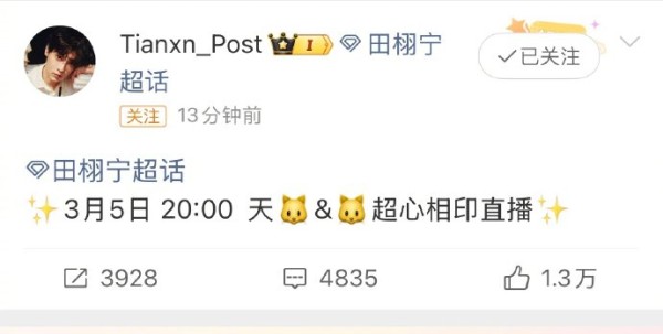 田栩宁3月5日心心相印直播预热