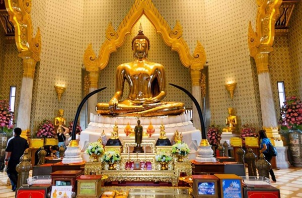 泰国,是东南亚著名的佛国,在这个拥有七千四百万人口的国家中,超过90%的人信仰佛教。无论是王室贵族,还是普通百姓,几乎每个人都虔诚信佛。国内佛寺遍布全国,据说数量超过三万座。首都曼谷更是被誉为佛教之都,佛教文化在这里根深蒂固。而在曼谷的众多寺庙中,有一座金佛寺尤为特别,它供奉着一尊重达5.5吨、高近4米的巨大金佛。它并不仅仅是一个宗教符号,它更是泰国的无价之宝,这尊佛像的金质是黄金而非普通金属,其中佛像的头发和发髻部分,几乎全部是99%纯金,重达45公斤;而下巴到额头的部分纯度为80%,其余部分纯度为40%。整尊佛像的含金量超过60%。