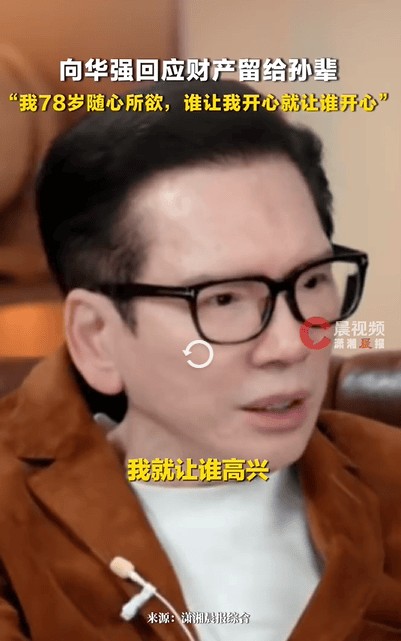 3月1日,向华强在个人社交平台发布视频,视频中回应了关于“遗产分配”一事。他表示,78岁已经“随心所欲”,并坦言和郭碧婷及孙辈们相处很开心。“谁让我开心,我就让谁开心。儿子不高兴?那他也做点事让我高兴啊,世界要公平”。