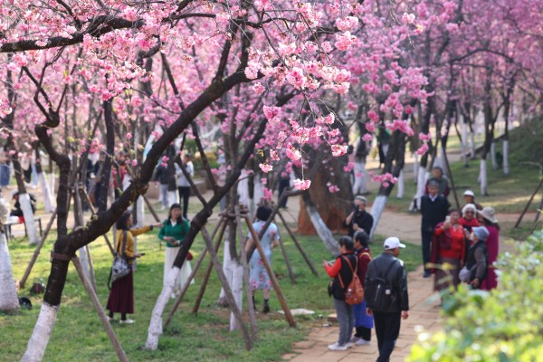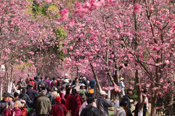 除了当下的精彩活动,本次樱花节还推出了一系列特色体验。3月6日,园区将举办盆景艺术体验课堂,游客可亲手制作盆景并免费带走,感受园艺之趣。在周末及“三八”妇女节等节点,“花满圆通茶意浓”奉茶活动也将如期开展。届时,身着古风装扮的工作人员将在花海中现场制作云南滇红,为游客免费奉上香醇茶饮,让大家在赏樱之余,品味云南红茶文化的独特魅力。