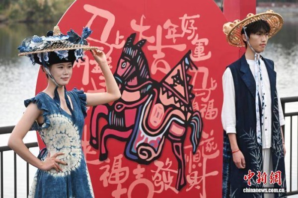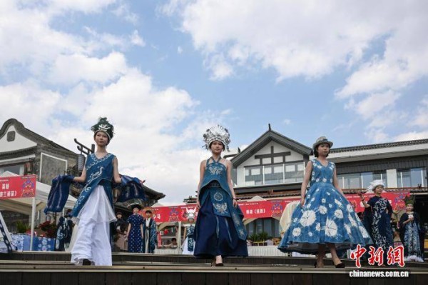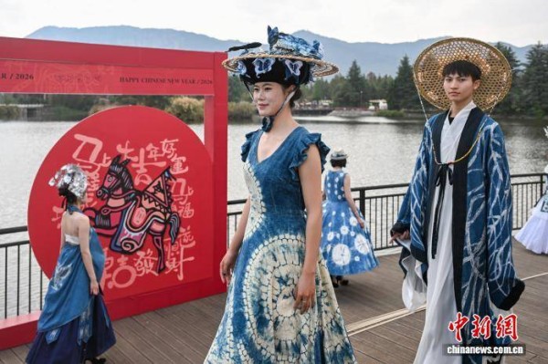 3月2日,模特展示蜡染技艺制作的民族服饰。当日,“昆明故城”文化街区上演云南非遗创新服饰秀,展现民族传统服饰与现代生活融合的独特审美。中新社记者 李嘉娴 摄