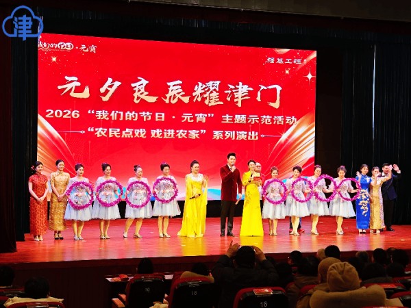 天津北方网讯:3月3日(正月十五)下午,津南区双港镇新时代文明实践所内外欢声笑语、暖意融融。由市委宣传部、市文明办、市文联、天津海河传媒中心、天津北方演艺集团、津南区新时代文明实践中心共同主办的天津市2026年“我们的节日·元宵”主题示范活动暨“农民点戏 戏进农家”系列惠民演出津南区双港镇专场在此精彩举办。