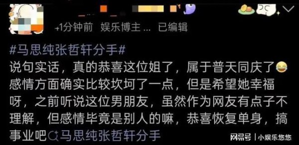 恭喜马思纯,分手快乐。
