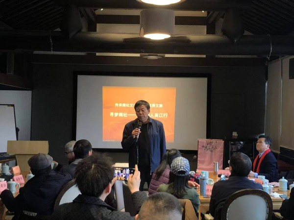 雅集在吴江区南社研究会会长俞前欢迎辞中拉开序幕。俞前会长对各位来宾表示欢迎,并介绍了吴江与南社的历史渊源以及当地南社文化传承、“诗词之乡建设”等相关工作。