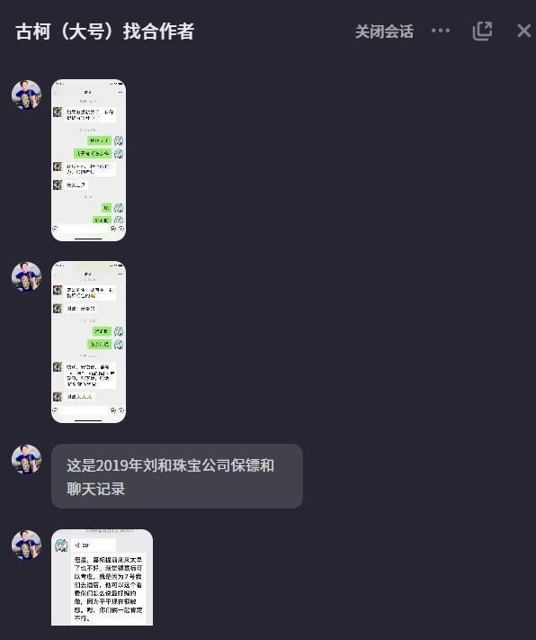 从古柯提供的微信截图里,可以看出刘晓庆与刘家标关系密切。