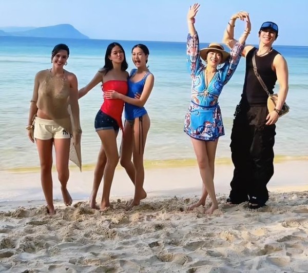 56岁钟丽缇晒一家人泳装照,17岁小女儿身材逆天,张伦硕大秀肌肉
