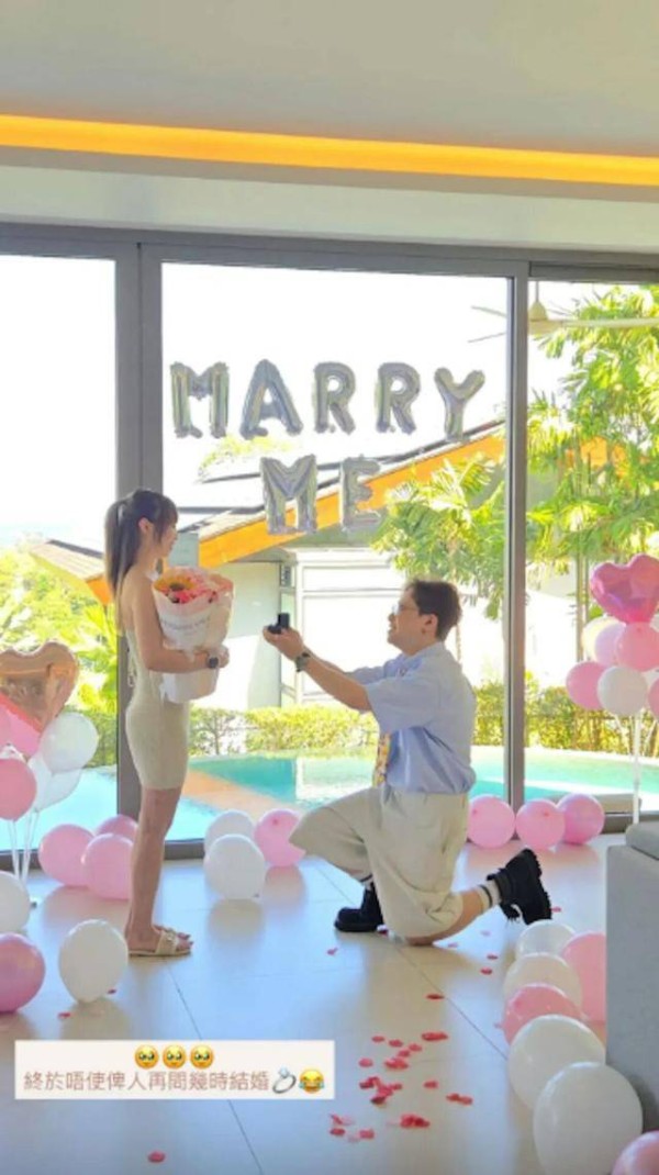 从黄荣璋和未婚妻在社交媒体分享的照片看,这场求婚仪式花尽心思。为给女友终生难忘的回忆,他特意将现场布置成粉白交织的气球海,背景高挂求婚英文字母巨型灯饰,场面浪漫氛围拉满。