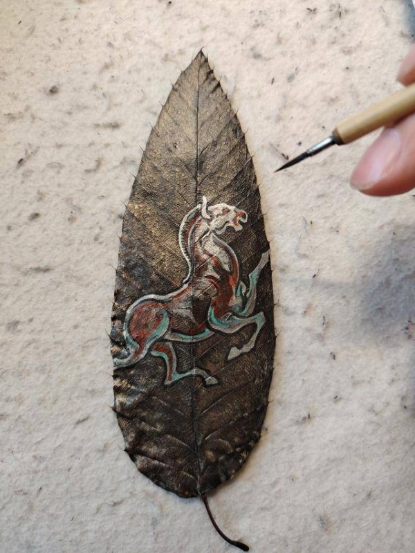 叶画艺术起源于西周时期,是以树叶为载体的传统美术形式,其历史源远流长,融合自然、宗教与工艺多重维度。