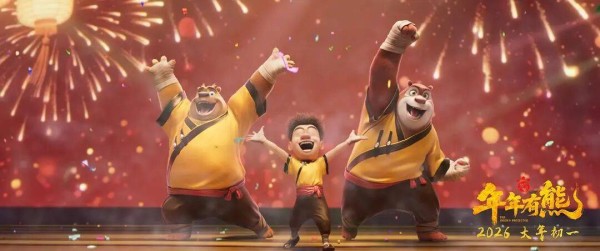 在《年年有熊》(2026)中,时空上构建了年关城这一中式奇幻空间,融合了传统年俗文化与现代动画技术,在冲突解决上以情感和解替代了传统的正邪对抗。多类型元素的融合与叙事空间的拓展,最终服务于“过年”这一核心情感内核的传达。正如导演林汇达所表达的,“《熊出没》第一部长片就是《熊出没之过年》,电影进入到第12部,在生肖的轮回之际,再次讲述过年,意义非凡”。