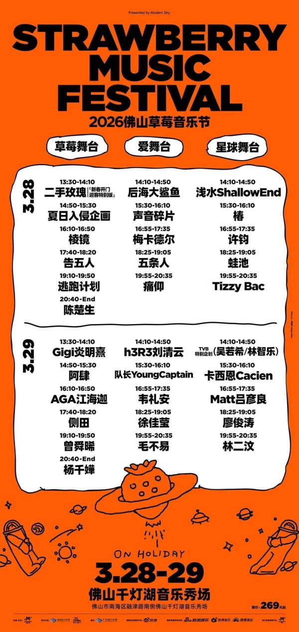 据悉,此前3月3日13点,2026佛山草莓音乐节开票,公布演出时间表。