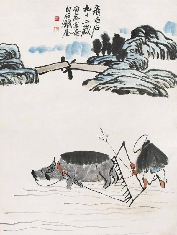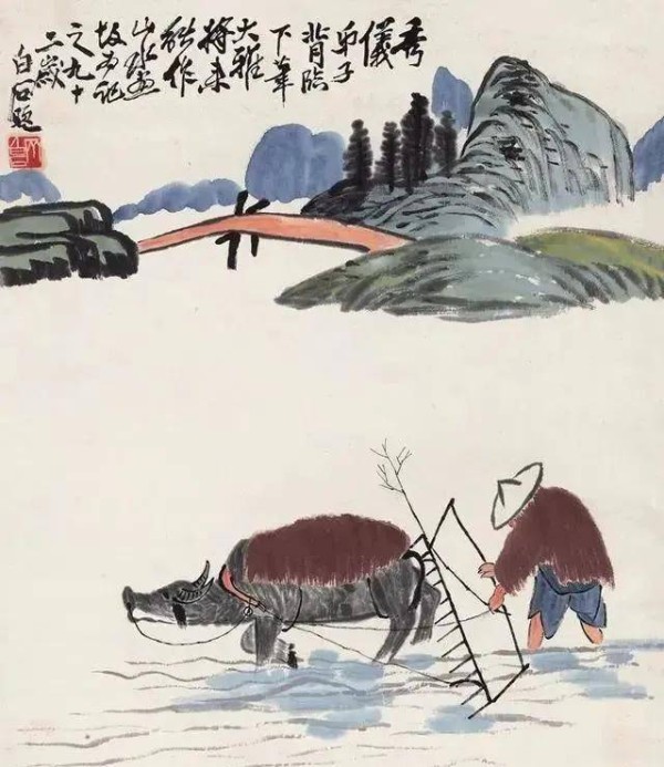 齐白石没画完的画,女儿帮他补全了,仍卖3000万,网友:生财有道齐白石画牛被打脸?画牛像画猪卖12万,弟子添几笔后,卖7751万
