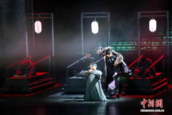 3月14日晚,改编自马伯庸同名小说的话剧《长安十二时辰》在江西省南昌市红谷滩区南昌保利大剧院上演。该剧采用多线索叙事结构,将“守长安”与“乱长安”两条线索紧密交织,把理性与疯狂两种不同抉择同时展现在观众面前。在原作的基础上,本剧还加入了创新改编,将先锋、潮流的戏剧方式融入其中,塑造出古今交融的“长安”概念,传递了守护万民的家国情怀。图为《长安十二时辰》演出现场。 熊锦阳 摄