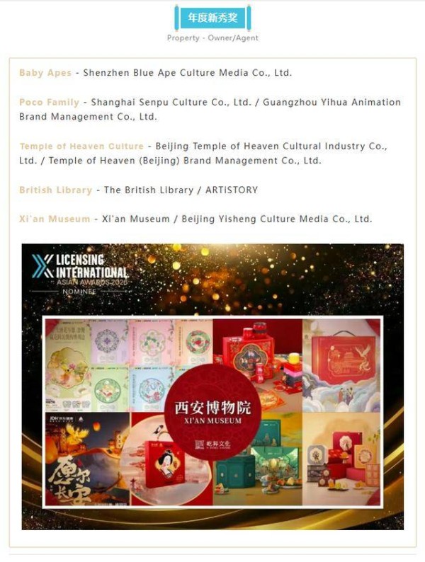 亚洲授权业卓越大奖是业内公认的亚洲授权行业最高奖项,自2013年创立以来,作为全球授权业卓越大奖在亚洲的重要延伸,持续聚焦区域授权市场的创新成果与行业标杆。据介绍,本届大奖参评领域覆盖娱乐、艺术、文化、体育、游戏等多个板块,吸引了迪士尼、漫威、可口可乐等国际巨头参与,参评企业跨越中、日、韩、泰等12个国家和地区。经50余位行业专家、企业高管组成的国际评审团层层筛选,仅61个优秀项目最终入围。西安博物院的入围,是国际业界对其文创授权工作的高度认可。