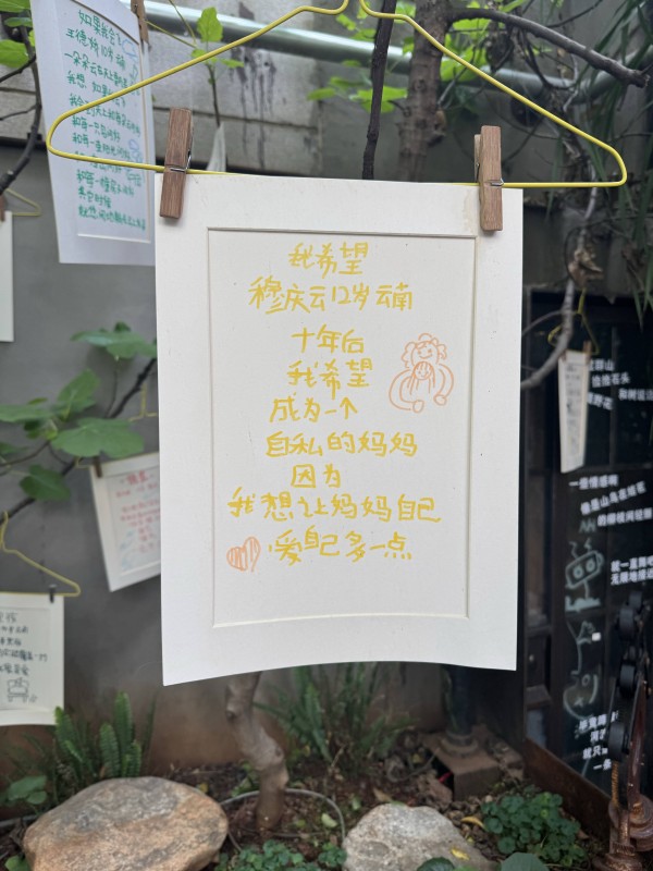 “我希望成为一个自私的妈妈,因为我想让妈妈自己爱自己多一点。”“人生就是小草,时间一到就黄了。”……这样稚嫩澄澈的奇思妙想点缀了昆明的春日,内容简单却令人动容,每一次驻足、每一张照片,都在续写这场温暖的相遇——爱与表达,永远不会落幕。