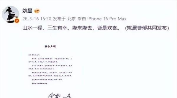 说出来你可能没想到,姚晨和曹郁那张刷屏全网的离婚声明,居然是个迟到好几年的公告。之前俩人对外一直维持着恩爱和睦的样子,没想到早早就办完了离婚手续。连最后一次公开同框,都全程零交流形同陌路,连路人都能看出不对劲。更炸的是,姚晨早年的旧八卦这次又被翻了出来,当年那桩婚内出轨的爆料,细节真的挺让人惊讶。